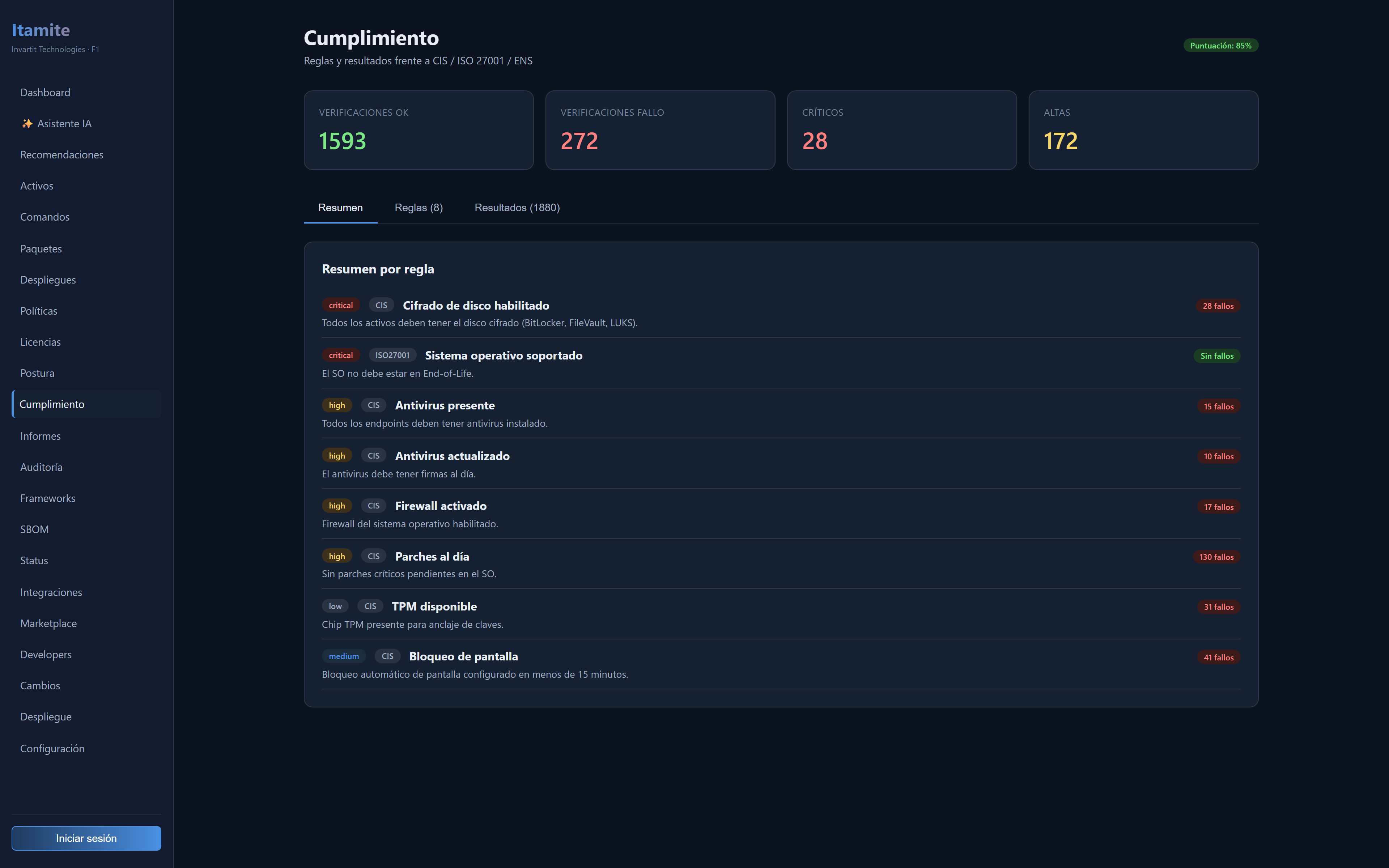 Continuous inventory, license governance, Zero-Trust remote operation, automatic compliance, and AI assistant. European data sovereignty by default.