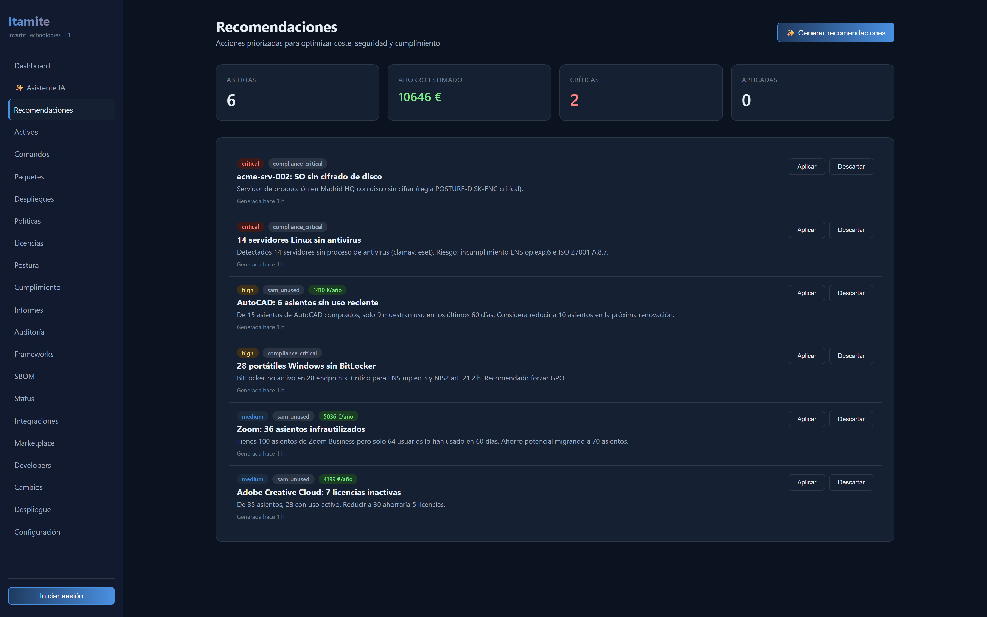 Itamite replaces ServiceNow, Snow, Lansweeper, NinjaOne and Productiv in a single modern product.